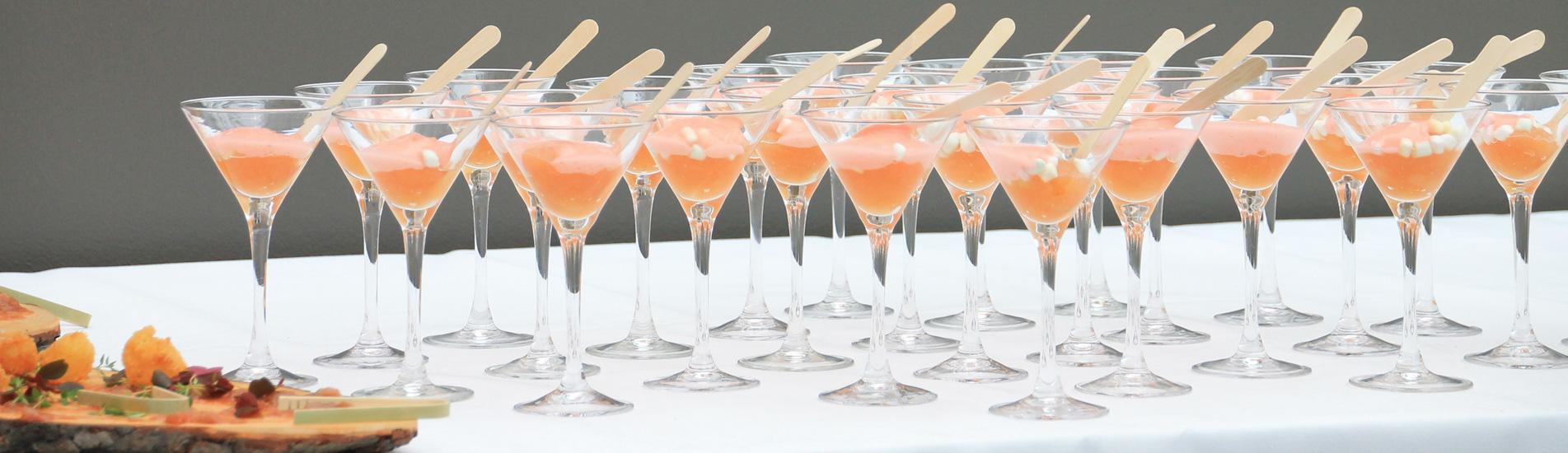 Vi holder events med stående receptionsmad, eller mere formelle fester, hvor gæsterne alle får serveret 3 eller 4 retter mad. Vi sørger for drikkevarer, der passer til og en masse mennesker, som gør deres ypperste for at levere et uforglemmeligt event.
